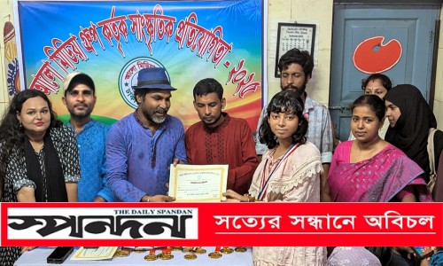 খুলনা প্রতিনিধি : খুলনা আর্ট একাডেমিতে আলো মিডিয়া গ্রুপের উদ্যোগে দিনব্যাপী সাংস্কৃতিক প্রতিযোগিতা ও পুরস্কার বিতরণী অনুষ্ঠান অনুষ্ঠিত হয়েছে। অনুষ্ঠানে সহযোগিতা করেন কবি ও গীতিকার মোঃ জাবেদুল ইসলাম। বুধবার সকাল থেকে বিকেল পর্যন্ত চিত্রাঙ্কন, আবৃত্তি ও হাতের লেখা প্রতিযোগিতায় তিনটি গ্রুপে ১০৫ জন শিক্ষার্থী অংশ নেয়। আটটি গ্রুপ থেকে ২৪ জন শিশু শিল্পীকে মেধা তালিকায় স্থান দিয়ে মেডেল ও সনদ প্রদান করা হয়। অংশগ্রহণকারী সকলকেই উত্তম পুরস্কার দেয়া হয়। বিশেষ দিক ছিল এ প্রতিযোগিতায় কোনো রেজিস্ট্রেশন ফি নেয়া হয়নি। এ জন্য চিত্রশিল্পী মিলন বিশ্বাস ধন্যবাদ জানান আলো মিডিয়া গ্রুপের প্রতিষ্ঠাতা পরিচালক আহমেদ হোসাইন ছানু ও কবি জাবেদুল ইসলামকে। অনুষ্ঠানে প্রধান অতিথি ছিলেন সাংবাদিক ও সংগঠক আহমেদ হোসাইন ছানু। বিশেষ অতিথি ছিলেন সাংবাদিক মোঃ মাহফুজুর রহমান, রামপ্রসাদ রায়, মাহমুদুল হাসান সোহেল রানা, আসাদুল হক, কবি মোঃ রহমত আলী ও বাউল শিল্পী প্রবীর শীল। চিত্রাঙ্কন, আবৃত্তি ও হাতের লেখার বিচারক হিসেবে দায়িত্ব পালন করেন মহানন্দ গাইন, শিল্পী পিন্টু টিকাদার, জয়দেব গাইন, ধনঞ্জয় রায় ও অনামিকা সাহা তিন্নি। অনুষ্ঠানটি পরিচালনা করেন চিত্রশিল্পী মিলন বিশ্বাস। সার্বিক সহযোগিতা করেন শিলা বিশ্বাস ও শর্মি দেবনাথ।