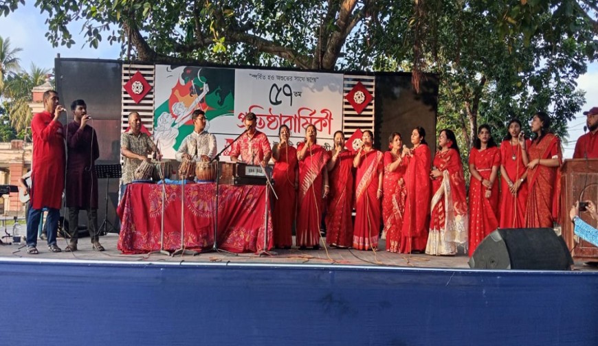 শুক্রবার বিকেলে টাউন হল ময়দানের রওশন আলী মঞ্চে সমবেত কন্ঠে জাতীয় সংগীত এবং উদীচী সংগীত পরিবেশনের মধ্যদিয়ে অনুষ্ঠানে শুরু হয়। এর পরেই পরপর তিনটি গনসংগীত ও সমবেত নৃত্য পরিবেশন শেষে হয় আলোচনা সভা।