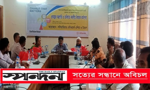 কলারোয়া প্রতিনিধি : কলারোয়ায় সমন্বিত পানি ব্যবস্থাপনা প্রকল্পের অগ্রগতি ও ভবিষ্যৎ করণীয় বিষয়ক এক কর্মশালা অনুষ্ঠিত হয়েছে। বুধবার কলারোয়া উপজেলা পরিষদ সম্মেলন কক্ষে অনুষ্ঠিত কর্মশালায় প্রধান অতিথি ছিলেন উপজেলা নির্বাহী অফিসার মো. জহুরুল ইসলাম। কলারোয়া উপজেলায় সলিডারিডাট নেটওয়ার্ক এশিয়া ও উত্তরণ যৌথভাবে প্রকল্পটি বাস্তবায়ন করে আসছে। কর্মশালায় অংশগ্রহণ করেন উপজেলা সিনিয়র মৎস্য কর্মকর্তা আব্দুল্লাহ মোহাম্মদ সাইদুর রেজা, উপজেলা যুব উন্নয়ন কর্মকর্তা পুলোক কুমার শিকদার, মহিলা বিষয়ক কর্মকর্তা নুরুন্নাহার আক্তার, সমজসেবা কর্মকর্তা অনিমেশ দাশ, পৌরসভার প্রকৌশলী শহিদুল ইসলাম, সমাজসেবা অফিসের ওয়াহিদ মুরাদ, প্রকল্পের খুলনা অঞ্চলের ম্যানেজার মোস্তফা নুরুল ইসলাম, উত্তরণ খুলনার মোহাম্মদ ইকবাল হোসেন, সাতক্ষীরা প্রোগ্রাম অফিসার মশিউর রহমান, উত্তরণ কলারোয়া অফিসের মাজহারুল ইসলাম, কামরুজ্জামান, খোকন সরদার, দীপঙ্কর মন্ডল প্রমুখ।