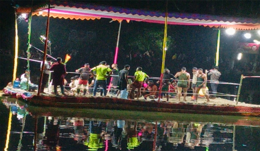 কলারোয়া প্রতিনিধি: কলারোয়ার যুগিখালিতে বিশাল পুকুরের মাঝখানে হওয়া ৮ দলীয় দিবারাত্রির হাডুডু প্রতিযোগিতায় পাইকপাড়া চ্যাম্পিয়ন হওয়ার গৌরব অর্জন করেছে। ব্যতিক্রমী আয়োজনের এই হাডুডু প্রতিযোগিতায় পুকুরের মাঝখানে মঞ্চ স্থাপন করা হয়। সেই জলাশয়ে স্থাপিত মঞ্চে দিবারাত্রির এই প্রতিযোগিতা সম্পন্ন করা হয়। বিপুল দর্শক সমাগমে অনুষ্ঠিত এই জমজমাট প্রতিযোগিতায় চূড়ান্ত পর্বে উন্নীত হয় বালিয়াডাঙ্গা ও পাইকপাড়া। চ্যাম্পিয়ন পাইকপাড়া দলকে পুরস্কার হিসেবে একটি বিশালাকৃতির গরু ও রানার্সআপ বালিয়াডাঙ্গাকে একটি খাসি প্রদান করা হয়। প্রতিযোগিতায় সেরা খেলোয়াড় বিবেচিত হয়েছেন বালিয়াডাঙ্গা দলের হয়ে খেলা জাতীয় হাডুডু দলের কৃতী খেলোয়াড় বাপ্পী। এর আগে বুধবার বিকেলে ব্যতিক্রমী এ প্রতিযোগিতার উদ্বোধন করেন অনুষ্ঠানের প্রধান অতিথি বিএনপির প্রকাশনা সম্পাদক ও বিএনপির প্রার্থী সাবেক সংসদ সদস্য হাবিবুল ইসলাম হাবিব। বুধবার (৫ নভেম্বর) যুগিখালি গ্রামবাসী আয়োজিত এ হাডুডু প্রতিযোগিতার উদ্বোধনী অনুষ্ঠানে সাবেক ইউপি চেয়ারম্যান রবিউল ইসলামের সভাপতিত্বে বিশেষ অতিথি ছিলেন সহকারী কমিশনার (ভূমি) রিয়াজ উদ্দিন আহমেদ, কলারোয়া থানার অফিসার ইনচার্জ শেখ সাইফুল ইসলাম, উপজেলা বিএনপির মুখপাত্র সাবেক অধ্যক্ষ রইছ উদ্দিন, সাবেক যুগ্ম সাধারণ সম্পাদক শেখ আব্দুল কাদের বাচ্চু, কলারোয়া বাজার ব্যবসায়ী সমিতির সভাপতি শওকত হোসেন, সহকারী অধ্যাপক আব্দুল জব্বার, সহকারী অধ্যাপক কেএম আনিছুর রহমান, মাস্টার আব্দুল করিম, কলারোয়া প্রেসক্লাবের যুগ্ম আহবায়ক এমএ সাজেদ, সাবেক সাধারণ সম্পাদক শেখ জুলফিকারুজ্জামান জিল্লু, গ্রামবাসীদের মধ্যে আরিজুল ইসলাম, কামরুল ইসলাম, নাসির, শামসুর, চয়ন প্রমুখ। রাতে প্রতিযোগিতা শেষ হওয়ার পূর্বমুহূর্ত পর্যন্ত পুকুরের চারপাশে বিপুল দর্শক প্রাণভরে এ হাডুডু খেলা উপভোগ করেন। নজরকাড়া এই প্রতিযোগিতায় অংশগ্রণকারী ৮ দল হলো: পাইকপাড়া, বালিয়াডাঙ্গা, কামারবায়শা, সেনেরগাতি, কুশোডাঙ্গা, খেদাপাড়া, বৈদ্যপুর ও কেঁড়াগাছি।
