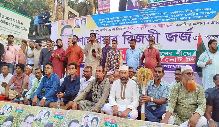 ফরহাদ খান, নড়াইল: নড়াইল-২ আসনে জেলা বিএনপির সাবেক সাংগঠনিক সম্পাদক কেন্দ্রীয় ছাত্রদলের সাবেক সহ সাধারণ সম্পাদক শাহরিয়ার রিজভী জর্জের পক্ষে ধানের শীষের মনোনয়ন দাবিতে সমাবেশ অনুষ্ঠিত হয়েছে। সোমবার বিকেলে শহরের পুরাতন বাসটার্মিনাল চত্বরে এ সমাবেশ অনুষ্ঠিত হয়।