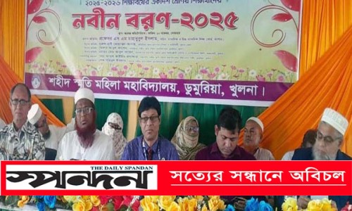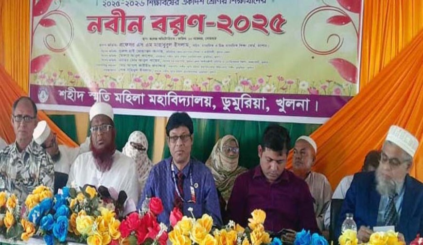 ডুমুরিয়া প্রতিনিধি: “তোমরা হও আলোকিত তোমরা ছড়াও আলো, জ্ঞানার্জনের আঙ্গিনাতে নতুন প্রদীপ জ্বালো” এই স্লোগানকে সামনে রেখে ডুমুরিয়া শহীদ স্মৃতি মহিলা মহাবিদ্যালয়ে ২০২৫-২০২৬ শিক্ষাবর্ষের একাদশ শ্রেণীর শিক্ষার্থীদের নবীণ বরণ অনুষ্ঠিত হয়েছে। সোমবার দুপুরে কলেজ ক্যাম্পাসে অনুষ্ঠিত সভায় প্রধান অতিথি ছিলেন মাধ্যমিক ও উচ্চমাধ্যমিক শিক্ষা বোর্ড, যশোর’র সচিব প্রফেসর এসএম মাহাবুবুল ইসলাম। কলেজ গভর্ণিং বডির সভাপতি আব্দুল কাইয়ুম জমাদ্দারের সভাপতিত্বে বিশেষ অতিথির বক্তব্য দেন, অতিরিক্ত জেলা প্রশাসক (শিক্ষা ও আইসিটি) নুরুল হাই মোহাম্মদ আনাছ, খুলনা জেলা আইনজীবী সমিতির সাবেক সহ-সভাপতি অ্যাড. আবুল খয়ের ও নৌবাহিনী কলেজের অধ্যাপক মাসুদ আলম গোলদার।