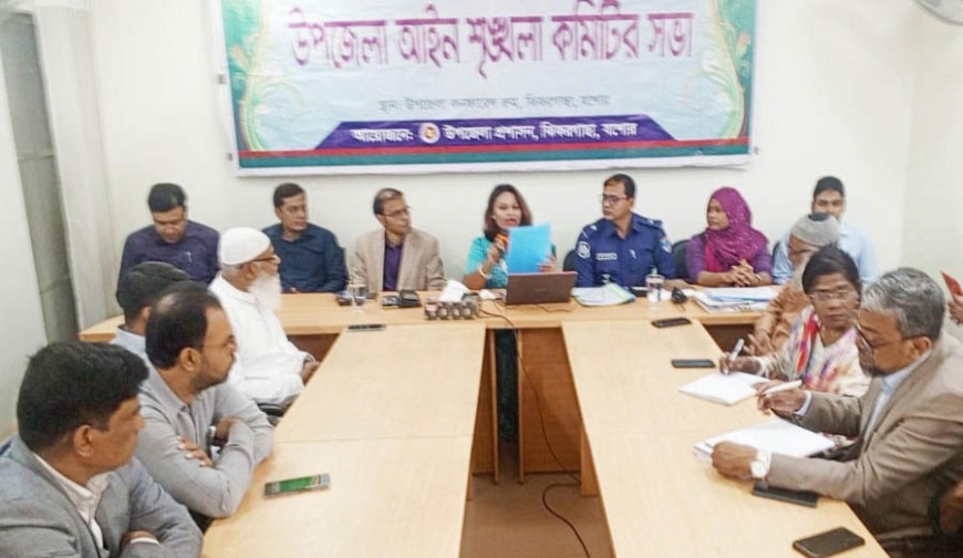 এম আলমগীর, ঝিকরগাছা: ঝিকরগাছা উপজেলা আইনশৃঙ্খলা কমিটির সভা, মাসিক সমন্বয়সভা ও উপজেলা পর্যায়ে সামাজিক সম্প্রীতি কমিটির পৃথক সভা অনুষ্ঠিত হয়েছে। মঙ্গলবার (১৮ নভেম্বর) দুপুর ১২টায় উপজেলা পরিষদ কনফারেন্স রুমে আইনশৃঙ্খলা কমিটির সভায় সভাপতিত্ব করেন নবাগত উপজেলা নির্বাহী অফিসার মোছাঃ রনী খাতুন। পরে একই স্থানে মাসিক সমন্বয় সভা, সামাজিক সম্প্রীতি কমিটির সভা, এনজিও সমন্বয় সভা অনুষ্ঠিত হয়েছে। পৃথক এসব সভায় বক্তব্য রাখেন সহকারী কমিশনার (ভ‚মি) নাভিদ সারওয়ার, থানার অফিসার ইনচার্জ (ওসি) নুর মোহাম্মদ গাজী, প্রাণিসম্পদ অফিসার ডা. মাসুমা আক্তার, কৃষি অফিসার কৃষিবিদ মোঃ নুরুল ইসলাম, উপজেলা স্বাস্থ্য ও পরিবার পরিকল্পনা কর্মকর্তা ডা. আব্দুর রশিদ, বীর মুক্তিযোদ্ধা রফিকুল ইসলাম প্রমুখ। এ সময় উপজেলা পরিষদের সকল দপ্তরের প্রধানগণ, জনপ্রতিনিধিবৃন্দসহ বিভিন্ন সামাজিক সংগঠনের নেতৃবৃন্দ উপস্থিত ছিলেন। সভায় উপজেলা আইনশৃঙ্খলা বজায় রাখা, বাজারদর নিয়ন্ত্রণে রাখা, যানজট নিরসনসহ বিভিন্ন বিষয় গুরুত্বারোপ করেন, উপজেলা নির্বাহী অফিসার মোছাঃ রনী খাতুন।
