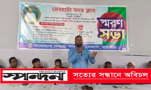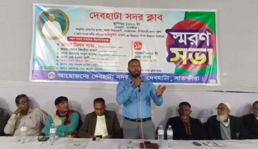দেবহাটা (সাতক্ষীরা) প্রতিনিধি: দেবহাটা সদর ক্লাবের আয়োজনে আধুনিক দেবহাটার রূপকার জমিদার ফণীভূষণ মন্ডলের তিরোধান দিবসে স্মরণসভা অনুষ্ঠিত হয়েছে। বুধবার রাত সাড়ে ৭টায় ক্লাব চত্বরে অনুষ্ঠিত স্মরণসভায় সভাপতিত্ব করেন সদর ক্লাবের ভারপ্রাপ্ত সভাপতি আলহাজ আবুল হোসেন। প্রধান অতিথি ছিলেন দেবহাটার সহকারী কমিশনার (ভূমি) এম. শরীফ খাঁন। বিশেষ অতিথি ছিলেন দেবহাটা থানার অফিসার ইনচার্জ গোলাম কিবরিয়া হাসান ও দেবহাটা সদর ইউপি চেয়ারম্যান আব্দুল মতিন বকুল। শুরুতে জমিদার ফণীভূষণ মন্ডলের স্মৃতির প্রতি শ্রদ্ধা জানিয়ে ক্রোড়পত্র উন্মোচন করেন সদর ক্লাবের সাধারণ সম্পাদক আব্দুল হাবিব মন্টু। স্বাগত বক্তব্য রাখেন ফণীভূষণ মন্ডলের বংশধর সাতক্ষীরা সদর উপজেলার সাবেক উপজেলা মাধ্যমিক শিক্ষা অফিসার নারায়ণ চন্দ্র মন্ডল।