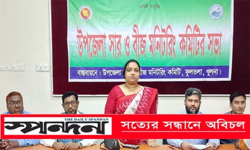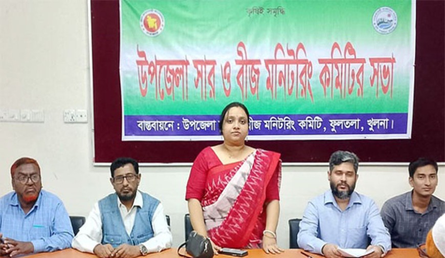 ফুলতলা (খুলনা) প্রতিনিধি: ফুলতলা উপজেলা সার ও বীজ মনিটরিং কমিটির সভা বৃহস্পতিবার বিকেলে উপজেলা কৃষি অফিস মিলনায়তনে অনুষ্ঠিত হয়। সভায় সভাপতিত্ব করেন উপজেলা নির্বাহী অফিসার সুচি রানী সাহা। স্বাগত বক্তৃতা করেন উপজেলা কৃষি অফিসার আরিফ হোসেন। সভায় বক্তৃতা করেন কৃষি সম্প্রসারণ অফিসার শাহ আরিফ শাওন, প্রেসক্লাব সভাপতি শামসুল আলম খোকন, সহকারী কৃষি কর্মকর্তা তায়জুল ইসলাম, উপ-সহকারী কৃষি কর্মকর্তা সাইফুল ইসলাম, সার ডিলার সমিতির সভাপতি শেখ আ. হালিম, সার ডিলার সেলিম, আফছার শেখ, রফিকুজ্জামান রাজু, খন্দকার শাহিনুর রহমান, তবিবুর রহমান ভুঁইয়া লিটন, রুপা খাতুন, মামুন শেখ, গোলাম সরোয়ার প্রমুখ। সভায় নতুন নীতিমালা অনুযায়ী উপজেলার ৪ ইউনিয়নে ১২ সার ডিলার নিয়োগ ও সীমানা নির্ধালনের বিষয় আলোচনা করা হয়। এর পূর্বে উপজেলা নির্বাহী অফিসার সুচি রানী সাহা চাষির মাঝে প্রয়োদনার গম বীজ, সূর্যমুখী ফুলের বীজ ও সার বিতরণ করেন।