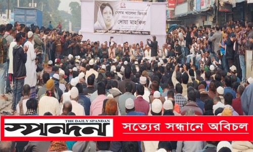 এম আলমগীর, ঝিকরগাছা : বেগম খালেদা জিয়ার পরিপূর্ণ সুস্থতা কামনায় দোয়া মাহফিল অনুষ্ঠিত হয়েছে। ঝিকরগাছা উপজেলা ও পৌর বিএনপির আয়োজনে রোববার আসরবাদ স্থানীয় সোনালী মার্কেট চত্বরে অনুষ্ঠিত দোয়া পরিচাণা করেন বাসস্ট্যান্ড জামে মসজিদের ইমাম ও খতিব মাওলানা আব্দুস শুকুর। দোয়া মাহফিলে সভাপতিত্ব করেন উপজেলা বিএনপির সভাপতি ও কেন্দ্রীয় সদস্য সাবিরা নাজমুল মুন্নি। এ সময় উপস্থিত ছিলেন ঝিকরগাছা উপজেলা বিএনপির সিনিয়র সহসভাপতি খোরশেদ আলম, সহসভাপতি মোহাম্মদ শহিদুল ইসলাম, সিনিয়র যুগ্ম-সম্পাদক সরদার শহিদুল ইসলাম, সাংগঠনিক সম্পাদক মুরাদুন্নবী মুরাদ, সাংগঠনিক সম্পাদক কাজী আব্দুস সাত্তার, পৌর বিএনপির সভাপতি রুহুল আমিন সুজন, সাধারণ সম্পাদক রাশেদুল মমিন সুজন, সাংগঠনিক সম্পাদক আলী হোসেন লাল্টু, উপজেলা যুবদলের আহবায়ক মোনাজ্জেল হোসেন লিটন, সদস্য সচিব নাজমুল হক নাজু, সিনিয়র যুগ্ম-আহবায়ক আরাফাত কল্লোল, পৌর যুবদলের আহবায়ক আরাফাত হোসেন কোমল, সদস্য সচিব মইনুল ইসলাম জনি, উপজেলা ছাত্রদলের আহবায়ক আশরাফুল আলম রানা, সদস্য সচিব শাহিন আলম বিপ্লবসহ বিভিন্ন ইউনিয়ন বিএনপির নেতৃবৃন্দ, যুবদল, ছাত্রদল, কৃষকদলের সকল স্তরের নেতৃবৃন্দ।