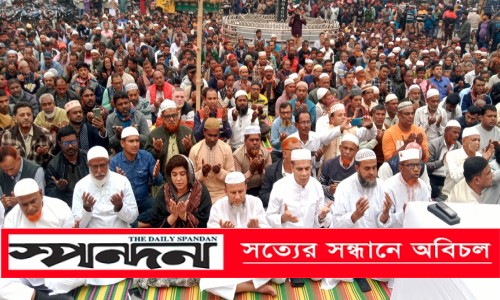 এর আগে প্রেসক্লাব মোড়ে আছরের সালাতের ইমামতি করেন পাচনামনা পৌর জামে মসজিদের ইমাম শাহিনুর রহমান। মোনাজাতে দেশ, জাতি ও মুসলিম উম্মাহর শান্তি-সমৃদ্ধিও কামনা করা হয়।