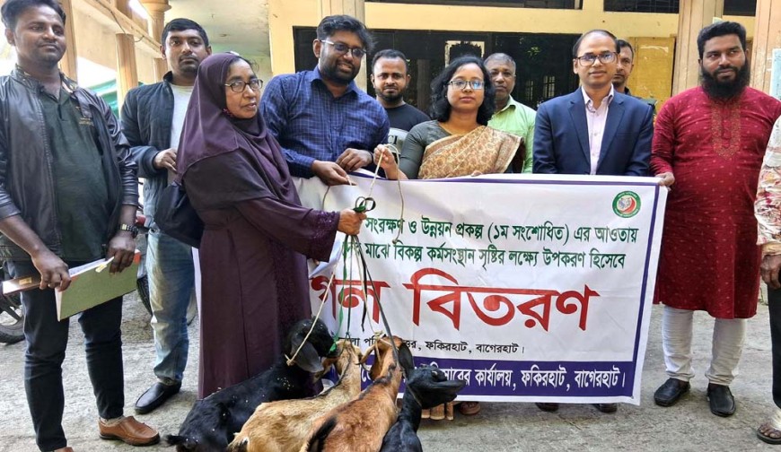 ফকিরহাট (বাগেরহাট) প্রতিনিধি : বাগেরহাটের ফকিরহাটে দেশীয় প্রজাতির মাছ ও শামুক সংরক্ষণ এবং উন্নয়ন প্রকল্পের আওতায় জেলেদের বিকল্প কর্মসংস্থান সৃষ্টির লক্ষ্যে তাদের মাঝে ছাগল, খাবার ও ওষুধ বিতরণ করা হয়েছে।