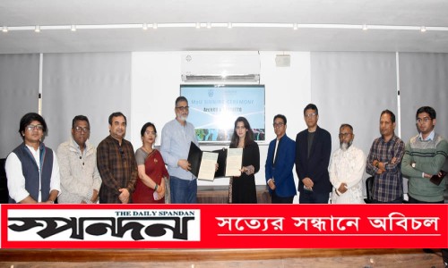 খুলনা প্রতিনিধি : খুলনা বিশ্ববিদ্যালয়ে রফিক আজম ট্রাভেল স্কলারশিপ চালুর লক্ষ্যে স্থাপত্য ডিসিপ্লিন ও শাতোত্তো আর্কিটেকচার ফর গ্রিন লিভিং এর মধ্যে এক সমঝোতা স্মারক (এমওইউ) স্বাক্ষরিত হয়েছে। মঙ্গলবার বেলা ১১টায় প্রশাসনিক ভবনের দ্বিতীয় তলাস্থ সভাকক্ষে এই এমওইউ স্বাক্ষর অনুষ্ঠিত হয়। খুলনা বিশ্ববিদ্যালয়ের পক্ষে ট্রেজারার প্রফেসর ড. মোঃ নূরুন্নবী এবং শাতোত্তো আর্কিটেকচারের পক্ষে প্রতিষ্ঠানের পার্টনার নুর ই জান্নাত জুঁই এমওইউতে স্বাক্ষর করেন। পরে স্বাক্ষরিত এমওইউ’র কপি উভয় পক্ষের মধ্যে বিনিময় করা হয়।