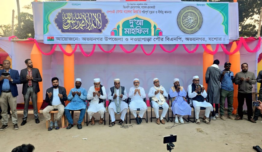 অভয়নগর (যশোর) প্রতিনিধি : বিএনপির চেয়ারপার্সন ও সাবেক প্রধানমন্ত্রী বেগম খালেদা জিয়ার পরিপূর্ণ সুস্থতা ও দীর্ঘায়ু কামনায় অভয়নগরে দোয়া মাহফিল অনুষ্ঠিত হয়েছে। শুক্রবার (৫ ডিসেম্বর) বিকেলে অভয়নগর উপজেলা ও নওয়াপাড়া পৌর বিএনপির আয়োজনে ইনস্টিটিউট মাঠে এ দোয়া মাহফিল অনুষ্ঠিত হয়।