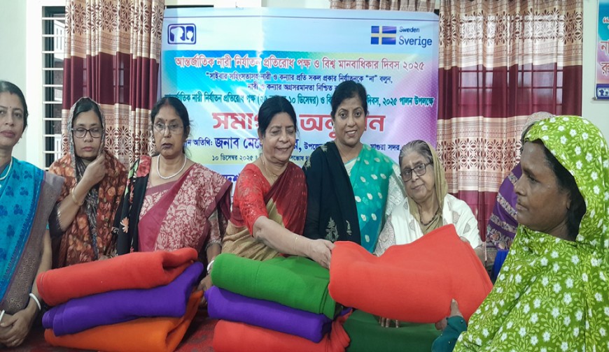 মাগুরা প্রতিনিধি : মাগুরায় আন্তর্জাতিক নারী নির্যাতন পক্ষের সমাপনী ও বিশ্ব মানবাধিকার দিবস পালন উপলক্ষে অসহায় হতদরিদ্র নারীদের মাঝে কম্বল বিতরণ করা হয়েছে। বুধবার বিকালে কেশব মোড়ে সন্তোষ দত্ত বিল্ডিংয়ের ৩য় তলায় এ কম্বল বিতরণ অনুষ্ঠানের আয়োজন করে বাংলাদেশ মহিলা পরিষদ জেলা শাখা মাগুরা। অনুষ্ঠানে জেলা শাখার সভাপতি কাজী লাবনী জামানের সভাপতিত্বে বক্তব্য রাখেন কেন্দ্রীয় সদস্য লিপিকা দত্ত, সংগঠনের সাধারণ সম্পাদক পাপিয়া খন্দকার, সহ-সভাপতি কুলসুম খাতুন, লিগ্যাল এইড সম্পাদক খালেদা হাসিম, গবেষণা সম্পাদক শ্রাবন্তী গোস্বামী, সাংগঠনিক সম্পাদক কৃষ্ণা সরকার, আন্দোলন সম্পাদক ফয়জীয়া আক্তার হীরা, সাধারণ সদস্য ডলি রহমান প্রমুখ। অনুষ্ঠানে মাগুরা পৌরসভার অসহায় হতদরিদ্র অসুবিধা বঞ্চিত ৬০ নারীর মাঝে কম্বল বিতরণ করা হয় ।