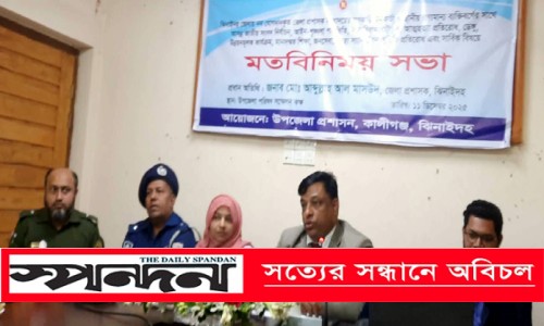 কালীগঞ্জ উপজেলা প্রশাসনের আয়োজনে ও উপজেলা নির্বাহী অফিসার রেজওয়ানা নাহিদের সভাপতিত্বে উপজেলা পরিষদের সভাকক্ষে মতবিনিময়ে জেলা প্রশাসক আরো বলেন- এ উপজেলার সরকারি সকল দপ্তরের কর্মকর্তাকে নিষ্ঠার সাথে দায়িত্ব পালন করতে হবে। জনগণের সেবা ও উন্নয়নমূলক কর্মকাণ্ড যেন থেমে না থাকে। এসব কাজে কোন অবহেলা বা অনিয়ম বরদাস্ত করা হবে না। মাদক প্রতিরোধ ও আইনশৃংখলা উন্নয়নে বর্তমান সরকার কঠোর পদক্ষেপ গ্রহনে সবসময় প্রস্তুত বলে জানান তিনি।