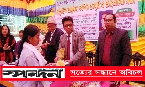 ফরহাদ খান, নড়াইল : ‘গায়ের কবি’ বিপুল বিশ্বাসের জন্মবার্ষিকী উপলক্ষে সাহিত্য আলোচনা, আবৃত্তি ও মেধাবী শিক্ষার্থীদের সংবর্ধনা দেয়া হয়েছে। নড়াইল কবিতা আসরের উদ্যোগে শনিবার (২৭ ডিসেম্বর) বিকেলে সদরের নলদীরচর গ্রামে চন্দ্রাকুঞ্জে এ অনুষ্ঠানের আয়োজন করা হয়। অনুষ্ঠানে প্রধান অতিথি ছিলেন-জেলা পরিষদের প্রধান নির্বাহী কর্মকর্তা (উপসচিব) আছাদুজ্জামান।