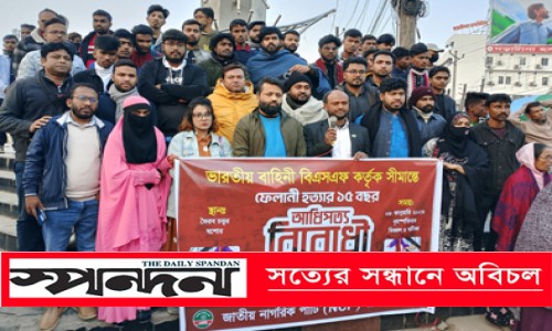 নিজস্ব প্রতিবেদক : ভারতীয় সীমান্তরক্ষী বাহিনী বিএসএফ কর্তৃক সীমান্তে কিশোরী ফেলানী হত্যার ১৫ বছর পুর্তি উপলক্ষে যশোরে প্রতিবাদী বিক্ষোভ কর্মসূচি পালিত হয়েছে। বৃহস্পতিবার বিকালে শহরের ভৈরব চত্বরে এনসিপি জেলা কমিটি এর আয়োজন করে। ভৈরব চত্বরের বিক্ষোভ কর্মসূচিতে জেলা এনসিপির যুগ্ম সমন্বয়কারী ড.মোহাম্মদ আল জাবীর সভাপতিত্ব করেন। বক্তব্য রাখেন যুগ্ম সমন্বয়কারী সাজিদ সরোয়ার, আশালতা, জেলা কমিটির সদস্য সজিবুর রহমান, আসমা, আসিফ সোহান, অভয়নগর উপজেলা এনসিপির যুগ্ম আহবায়ক ইরফান কাদির, সদর উপজেলা এনসিপি নেতা ফরহাদ, যুবশক্তির মুখ্য সংগঠক সোহানুর রহমান সোহান, সিনিয়র মুখ্য সংগঠক আল শিহাব প্রিয়, জেলা ছাত্রশক্তির প্রতিনিধি অমিত প্রমুখ। এসময় নেতৃবৃন্দ বলেছেন- “ফেলানী হত্যার ১৫ বছর পার হলেও আজও ন্যায়বিচার নিশ্চিত না হওয়া অত্যন্ত দুঃখজনক ও লজ্জাজনক। সীমান্তে নিরস্ত্র মানুষের ওপর এমন নির্মমতা মানবাধিকারের চরম লঙ্ঘন। অবিলম্বে সীমান্তে হত্যা বন্ধ এবং দোষীদের দৃষ্টান্তমূলক বিচার নিশ্চিত করতে হবে। নেতৃবৃন্দ আরো বলেন- “ফেলানীর মতো ঘটনার পুনরাবৃত্তি রোধে আন্তর্জাতিক আইন কার্যকর করতে হবে। নইলে এই বিচারহীনতা চলতে থাকলে এমন হত্যাকাণ্ড আরও ঘটবে। সমাবেশ থেকে নেতৃবৃন্দ সীমান্তে হত্যা বন্ধ, দোষীদের দ্রুত বিচার এবং মানবাধিকার রক্ষায় কার্যকর পদক্ষেপ গ্রহণের জোর দাবি জানান।