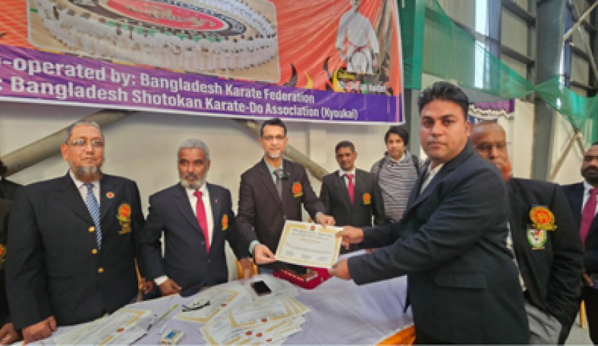 নিজস্ব প্রতিবেদক : বাংলাদেশ সোতোকান কারাতে দো কিউকাইয়ের আয়োজনে ও বাংলাদেশ কারাতে ফেডারেশনের সহযোগিতায় বৃহস্পতিবার ঢাকার পল্লবী ডি বক্স ইনডোর স্পোর্টস কমপ্লেক্সে একদিনব্যাপী কারাতে প্রশিক্ষণ সেমিনার অনুষ্ঠিত হয়েছে। সেমিনারে সভাপতিত্ব করেন বাংলাদেশ সোতোকান কারাতে দো কিউকাইয়ের সভাপতি শমসের আলম ভূঁইয়া। প্রশিক্ষণ প্রদান করেন আমেরিকান কারাতে প্রশিক্ষক সিহান আবু সুফিয়ান হায়দার। অনুষ্ঠানে প্রধান অতিথি ছিলেন বাংলাদেশ কারাতে ফেডারেশনের সাধারণ সম্পাদক মোয়াজ্জেম হোসেন সেন্টু। বিশেষ অতিথি ছিলেন বাংলাদেশ কারাতে টিচার্স অ্যাসোসিয়েশনের সভাপতি এ বি রনি এবং সাধারণ সম্পাদক আলমগীর হোসেন। এছাড়াও উপস্থিত ছিলেন বাংলাদেশ সোতোকান কারাতে দো কিউকাইয়ের সাংগঠনিক সম্পাদক আফজাল হোসেন, আন্তর্জাতিক বিষয়ক সম্পাদক মইনুল হোসেন, সদস্য রুপু আহমেদ, খুলনা বিভাগীয় কমিটির আহ্বায়ক মোহাম্মদ আলী এবং সদস্য সচিব ইমরান হাসান টুটুল। কারাতে প্রশিক্ষণ সেমিনারে দেশের বিভিন্ন জেলা থেকে দুই শতাধিক ছাত্র-ছাত্রী অংশগ্রহণ করেন। আয়োজকরা জানান, এ ধরনের প্রশিক্ষণ সেমিনার কারাতে খেলোয়াড়দের দক্ষতা বৃদ্ধিতে গুরুত্বপূর্ণ ভূমিকা রাখবে।