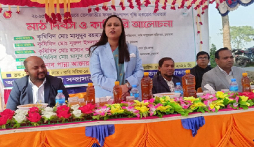 আলমডাঙ্গা অফিস : আলমডাঙ্গা উপজেলা কৃষি সম্প্রসারণ অফিসের উদ্যোগে তেল জাতীয় ফসলের উৎপাদন বৃদ্ধি প্রকল্পের আওতায় উপজেলার ডাউকি ইউনিয়নের মাজু ব্লকে মাধবপুর মাঠে এক মাঠ দিবস ও কারিগরী আলোচনা সভা অনুষ্ঠিত হয়েছে। বৃহস্পতিবার দুপুর ১২টার মাঠ দিবসের আলোচনা সভায় উপজেলা নির্বাহী অফিসার পান্না আক্তারের সভাপতিত্বে প্রধান অতিথি ছিলেন জেলা কৃষি সম্প্রসারণ অধিদপ্তরের জেলা বীজ প্রত্যয়ন অফিসার কৃষিবিদ নুরুল ইসলাম। বিশেষ অতিথি ছিলেন জেলা কৃষি সম্প্রসারণ অধিদপ্তরের মনিটরিং অফিসার হাসান আলী। স্বাগত বক্তব্য রাখেন আলমডাঙ্গা উপজেলা কৃষি সম্প্রসারণ অধিদপ্তরের কৃষি অফিসার কৃষিবিদ মাসুদ হোসেন পলাশ। উপজেলা কৃষি সম্প্রসারণ অফিসার কৃষিবিদ উদয় রহমানের উপস্থাপনায় বক্তব্য রাখেন সংশ্লিষ্ট এলাকার উপ সহকারী কৃষি কর্মকর্তা জাহিদুল ইসলাম, মেহেদী হাসান, দুলারী খাতুন, আব্দুর রফিক, উপসহকারী উদ্ভিদ সংরক্ষণ কর্মকর্তা খলিলুর রহমান, কৃষক প্রতিনিধি শহিদুল ইসলাম মোল্লা, রোকেয়া খাতুন, হাসিনা খাতুন প্রমুখ।