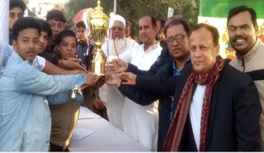 ফকিরহাট (বাগেরহাট) প্রতিনিধি : বাগেরহাটের ফকিরহাটে ৫৪তম বাংলাদেশ জাতীয় স্কুল, মাদ্রাসা ও কারিগরি শিক্ষা শীতকালিন ক্রীড়া প্রতিযোগিতার সমাপনী ও পুরস্কার বিতরণ অনুষ্ঠিত হয়েছে। বাংলাদেশ জাতীয় স্কুল, মাদ্রাসা ও কারিগরি শিক্ষা ক্রীড়া সমিতির ফকিরহাট শাখার উদ্যোগে শুক্রবার (৯ জানুয়ারি) বিকেল ৪টায় আট্টাকা কেরামত আলী পাইলট মাধ্যমিক বিদ্যালয় মাঠে এই পুরস্কার বিতরণী অনুষ্ঠানের আয়োজন করেন। এসময় উপজেলা মাধ্যমিক শিক্ষা কর্মকর্তা মো: গোলাম মোস্তা, একাডেমিক সুপারভাইজার আসাদুজ্জামান, সহকারী প্রোগ্রামার মো: আলমগীর হোসেন, উপজেলা শিক্ষক সমিতির সভাপতি মল্লিক আব্দুস সাত্তার, শিক্ষক, শেখ সুমন হোসেন, শ্যামল চন্দ্র মন্ডল, সবুজ দাস, সরদার কামাল হোসেন, দুলাল গোলদার, শেখ মনিরুজ্জামান, বিএনপি নেতা মো; আলমগীর হোসেন, কাজী শাহেনশাহ মিথুনসহ বিভিন্ন শিক্ষক, অভিভাবক ও শিক্ষার্থী উপস্থিত ছিলেন। পুরস্কার বিতরণী অনুষ্ঠানের বক্তারা বলেন, শারীরিক ও মানসিক বিকাশে খেলাধুলার বিকল্প নেই। নিয়মিত ক্রীড়া চর্চা শিক্ষার্থীদের শৃঙ্খলাবোধ, নেতৃত্বগুণ ও আত্মবিশ্বাস বাড়াতে সহায়তা করে। এছাড়া ক্রীড়া প্রতিযোগিতার মাধ্যমে দেশে একটি মাদকমুক্ত সুন্দর সমাজ গঠনে সহায়ক ভূমিকা পালন করবে। #
