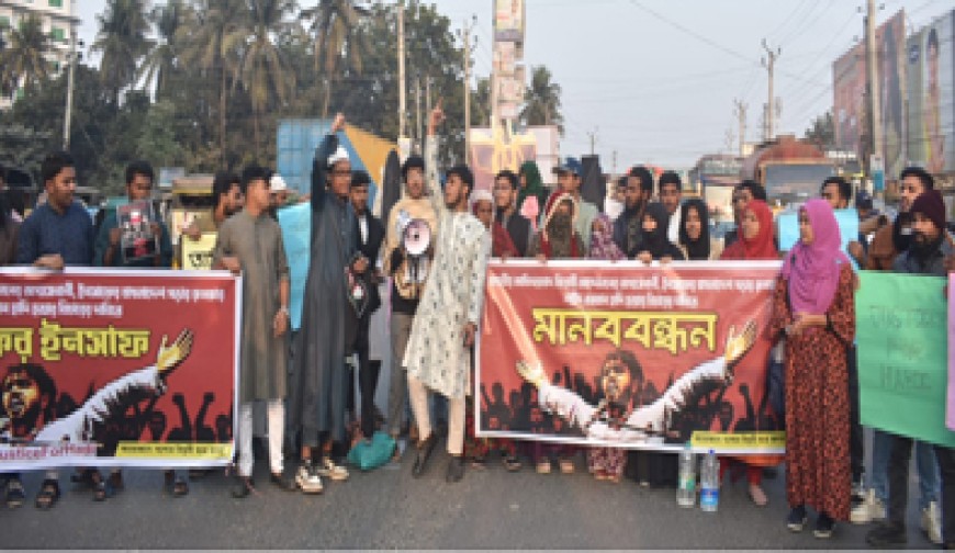 নিজস্ব প্রতিবেদক : ইনকিলাব মঞ্চের আহবায়ক শরিফ ওসমান হাদি হত্যার বিচার আদায়ের লক্ষ্যে যশোর শহরতলীর চাঁচড়া চেকপোস্ট এলাকায় জমায়েত অনুষ্ঠিত হয়েছে। শুক্রবার বিকেলে যশোর বিপ্লবী ছাত্র জনতার ব্যানারে এই কর্মসূচি পালিত হয়। এসময় বক্তব্য রাখেন মাহমুদুল হক সোহান। শোহানুর রহমান, আমির হামজা, আরিফুল ইসলাম টিটো,মাহমুদুল্লাহ রিহাদ, আমিনুল হক তামিম, উম্মে সাদিয়াসহ নেতৃবৃন্দ এসময় উপস্থিত ছিলেন।