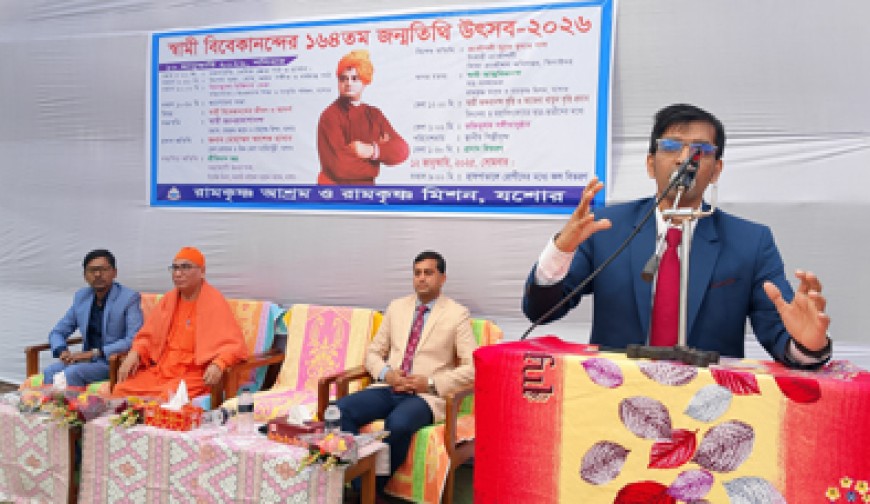 নিজম্ব প্রতিবেদক : যুগ-নায়ক স্বামী বিবেকানন্দের ১৬৪তম জন্মতিথি উদযাপিত হয়েছে। এ উপলক্ষ্যে যশোর রামকৃষ্ণ আশ্রম ও মিশনের উদ্যোগে শনিবার দিনব্যাপী উৎসবের আয়োজন করা হয়। উৎসবে এছাড়া বিবেকানন্দ শিক্ষা ও সংস্কৃতি পরিষদ যশোরের পরিচালনায় বিনামূল্যে চিকিৎসা সেবা, বিদ্যালয় ও মহাবিদ্যালয়ের শিক্ষার্থীদের মাঝে ‘স্বামী অক্ষরানন্দ ও আমেনা খাতুন বৃত্তি’ প্রদান এবং শীতার্তদের মাঝে কম্বল বিতরণ করা হয়। এদিন ভোরে আশ্রমের মূল মন্দিরে মঙ্গলারতির পর বেদমন্ত্র পাঠ ও প্রার্থনা, বিশেষ পূজা, হোম ও পুষ্পাঞ্জলির মধ্য দিয়ে এ উৎসব শুরু হয়। এরপর আশ্রম প্রাঙ্গণে আলোচনাসভা ও ভক্তিমূলক সংগীতানুষ্ঠান শেষে প্রসাদ বিতরণের মধ্য দিয়ে এ উৎসব সমাপ্ত হয়। ‘স্বামী বিবেকানন্দের জীবন ও আদর্শ’ শীর্ষক আলোচনা সভায় প্রধান অতিথি ছিলেন- যশোরের অতিরিক্ত ডেপুটি কমিশনার (এডিসি- রাজস্ব) কমলেশ মজুমদার। সভাপতিত্ব করেন যশোর রামকৃষ্ণ আশ্রম ও মিশনের অধ্যক্ষ স্বামী জ্ঞানপ্রকাশানন্দ। সম্মানিত অতিথি ছিলেন সরকারি মাইকেল মধুসূদন কলেজের ইংরেজি বিভাগের সহযোগী অধ্যাপক শ্রিবিধান ভদ্র। বিশেষ অতিথি ছিলেন ঝিনাইদহ শিক্ষা প্রকৌশল অধিদপ্তরের নির্বাহী প্রকৌশলী সুব্রত কুমার পাল। স্বাগত বক্তব্য দেন যশোর রামকৃষ্ণ আশ্রমের সহসম্পাদক স্বামী আত্মবিভানন্দ। সঞ্চালনা করেন নওয়াপাড়া মডেল কলেজের সহকারী অধ্যাপক দেবাশীষ রাহা। আলোচনা শেষে ভক্তিগীতি পরিবেশন করেন সঞ্জয় মল্লিক, তরুণ কান্তি হালদার বাপন। এদিকে, এ উপলক্ষে সোমবার সকাল ৯টায় যশোর ২৫০ শয্যা জেনারেল হাসপাতালের রোগীদের মধ্যে ফল বিতরণ করা হবে।
