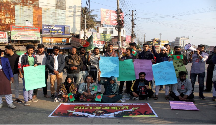 নিজস্ব প্রতিবেদক: হাদী হত্যার বিচারের দাবিতে যশোরে বিক্ষোভ মিছিল ও ব্লকেড কর্মসূচি পালন করেছে বিপ্লবী ছাত্র জনতা। রোববার বিকেলে শহরের মনিহার চত্বরে আয়োজিত এ কর্মসূচিতে বিভিন্ন শিক্ষা প্রতিষ্ঠানের ছাত্র-যুবকরা অংশ নেন। বিক্ষোভকারীরা মিছিল নিয়ে মনিহার চত্বর প্রদক্ষিণ করে সেখানে কিছু সময়ের জন্য সড়ক অবরোধ করেন। এ সময় তারা হত্যার সঙ্গে জড়িতদের দ্রুত গ্রেপ্তার ও দৃষ্টান্তমূলক শাস্তির দাবি জানান। সমাবেশে বক্তারা বলেন- “খুন করে পার পাওয়া যাবে না। আমরা আজ নীরব থাকার জন্য আসিনি, ভয় পাওয়ার জন্যও আসিনি। আমরা এসেছি ন্যায়ের দাবিতে গর্জে উঠতে।” তারা বলেন, হাদী কোনো অপরাধ করেননি, তবুও তাকে নির্মমভাবে হত্যা করা হয়েছে। এ হত্যাকাণ্ড শুধু একজন ব্যক্তির ওপর নয়, ন্যায়, মানবতা ও রাষ্ট্রের ওপর সরাসরি আঘাত। বক্তারা আরও বলেন- দোষীদের আশ্রয় দেওয়া চলবে না এবং বিচার বিলম্ব মানেই বিচার অস্বীকার। অবিলম্বে হাদী হত্যার বিচার না হলে সমাজের কেউই নিরাপদ থাকবে না বলেও তারা হুঁশিয়ারি উচ্চারণ করেন। কর্মসূচি চলাকালে এলাকায় অতিরিক্ত আইনশৃঙ্খলা বাহিনীর সদস্য মোতায়েন ছিল। পরে শান্তিপূর্ণভাবে কর্মসূচি শেষ হয়।