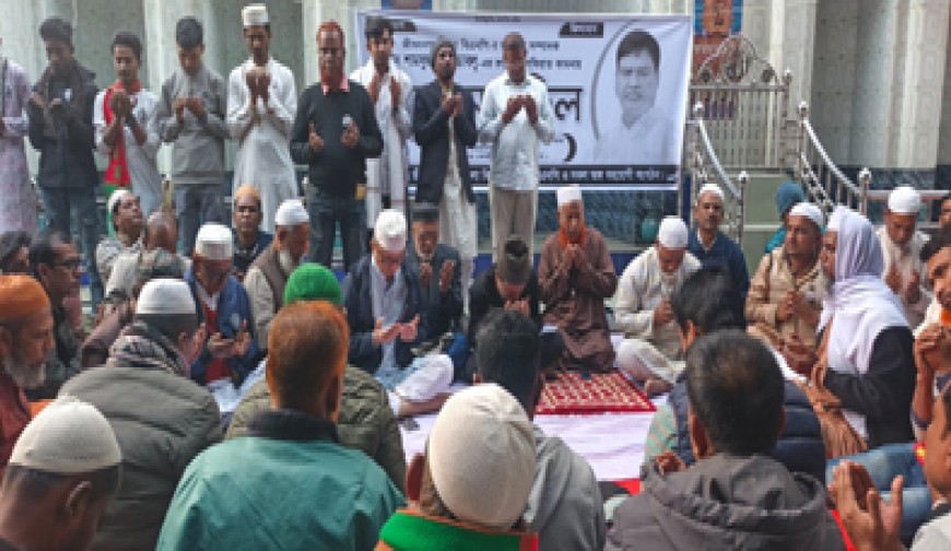 জীবননগর প্রতিনিধি: জীবননগর পৌর বিএনপির সাধারণ সম্পাদক শামসুজ্জামান ডাবলুর মৃত্যুতে তার মাগফিরাত কামনায় দোয়া মাহফিল অনুষ্ঠিত হয়েছে। শুক্রবার আছরের নামাজের পর জীবননগর পৌর কেন্দ্র ঈদগাহ ময়দানে জীবননগর উপজেলা ও পৌর বিএনপি এবং অঙ্গ সংগঠনের আয়োজনে এই দোয়া মাহফিলের আয়োজন করা হয়। দোয়া মাহফিলে প্রধান অতিথি ছিলেন চুয়াডাঙ্গা-২ আসনের ধানের শীষের প্রার্থী, জেলা বিএনপি ও বিজিএমইএর সভাপতি মাহমুদ হাসান খান বাবু। দোয়া মাহফিলে উপস্থিত ছিলেন জীবননগর পৌর বিএনপির সভাপতি শাহজাহান কবীর, জীবননগর উপজেলা বিএনপির সাধারণ সম্পাদক শাহজাহান আলী, সিনিয়র সহসভাপতি আবুল কালাম আজাদ, জীবননগর পৌর বিএনপির সহসভাপতি তাজুল ইসলাম, যুগ্ম সাধারণ সম্পাদক শফিউদ্দিন শফি, জীবননগর পৌর যুবদলের আহ্বায়ক হযরত আলী, উপজেলা যুবদলের সদস্যসচিব কামরুজ্জামান কামরুল, পৌর যুবদলের সদস্যসচিব মনির হোসেন, উপজেলা স্বেচ্ছাসেবক দলের সদস্যসচিব মোকলেছুর রহমান রাসেল, পৌর স্বেচ্ছাসেবক দলের আহ্বায়ক আরসাফ হোসেন, সদস্যসচিব সুমন বিশ্বাস, উপজেলা ছাত্রদলের সদস্যসচিব মোকছেদুর রহমান রিমন, জীবননগর ডিগ্রি কলেজ ছাত্রদলের সভাপতি রিংকু, সাধারণ সম্পাদক ফরহাদ। সভা পরিচালনা করেন চুয়াডাঙ্গা জেলা ছাত্রদলের সদস্য শ্রাবণ।