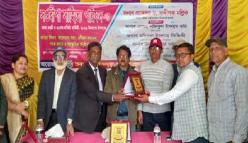 পাইকগাছা (খুলনা) প্রতিনিধি : পাইকগাছায় সপ্তদ্বীপা সাহিত্য পরিষদের রজত জয়ন্তী ও ২৬ তম প্রতিষ্ঠা বার্ষিকী উদযাপন এবং সম্মাননা প্রদান করা হয়েছে। সপ্তদ্বীপা সাহিত্য পরিষদের ২৬ তম প্রতিষ্ঠা বার্ষিকী উপলক্ষে ৭ ফেব্রুয়ারি শনিবার সকাল ১১ টায় উপজেলার নতুন বাজার চত্তরে অনুষ্ঠিত অনুষ্ঠানে গুণীজনদের সম্মাননা স্মারক, পদক ও পুরস্কার প্রদান করা হয়। অনুষ্ঠানে প্রধান অতিথি ছিলেন শিক্ষাবিদ, সাহিত্যিক- সাংস্কৃতিক গবেষক ও জীবন জাগরণী সঙ্গীত শিল্পী প্রফেসর ড. সন্দীপক মল্লিক। সপ্তদ্বীপা সাহিত্য পরিষদের সভাপতি সাংবাদিক ও কলামিস্ট প্রকাশ ঘোষ বিধানের সভাপতিত্বে বিশেষ ছিলেন অ্যাড.শফিকুল ইসলাম কচি, মোংলা উপজেলা খাদ্য নিয়ন্ত্রক লেখক ও কবি মনিরুল ইসলাম সিদ্দিকী, উপজেলা সেনেটারী ইন্সপেক্টর ও নিরাপদ খাদ্য কর্মকর্তা উদয় কুমার মন্ডল, প্রভাষক এস রোহাতাব উদ্দিন আহম্মেদ। সপ্তদ্বীপা সাহিত্য পরিষদের সাধারণ সম্পাদক মাধুরী রাণী সাধুর উপস্থাপনায় বক্তব্য রাখেন শেখ আজগর আলী, লিনজা আক্তার মিথিলা, রাবেয়া আক্তার মলি, সুকনাথ পাল, সুইটি আক্তার, মোহানা আক্তার রিনি, মিম আক্তার, জান্নাতি খাতুন, মিতু সেন, সমাইয়া প্রমুখ। সাহিত্যের বিভিন্ন বিষয় ও সামাজিক কর্মকাণ্ডে বিশেষ অবদান রাখায় ৩ জন গুণী ব্যক্তিকে সপ্তদ্বীপা সম্মাননা স্মারক ও হৈমনরেন্দ্র স্মৃতি পদক প্রদান করা হয়েছে। শিক্ষায় প্রভাষক এস রোহাতাব উদ্দিন আহম্মেদকে সপ্তদ্বীপা সম্মাননা, কর্মদক্ষতা ও সাফল্যে কৃষিবিদ নাহিদুল ইসলামকে হৈম- নরেন্দ্র স্মৃতি পদক ও সমাজ সেবায় সুকনাথ পাল হৈম- নরেন্দ্র স্মৃতি পদক প্রদান করা হয়। অনুষ্ঠানের প্রথম পর্বে কবিতা উৎসবে কবিতা পাঠ ও সংগীত পরিবেশন করেন ড. সন্দীপক মল্লিক, মাধুরী রাণী সাধু, রাবেয়া আক্তার মলি, তুর্য সাধূ, মিতু সেন, মিমি প্রমুখ। অনুষ্ঠানে কবি, সাহিত্যিক, শিল্পীসহ এলাকার সুধীবৃন্দ উপস্থিত ছিলেন।