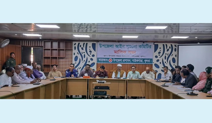 পাইকগাছা (খুলনা) প্রতিনিধি : পাইকগাছা উপজেলা আইনশৃঙ্খলা কমিটির মাসিকসভা অনুষ্ঠিত হয়েছে। মঙ্গলবার সকাল ১০টায় উপজেলা পরিষদ মিলনায়তনে উপজেলা প্রশাসনের আয়োজনে অনুষ্ঠিত সভায় সভাপতিত্ব করেন উপজেলা নির্বাহী অফিসার ওয়াসিউজ্জামান চৌধুরী। প্রধান অতিথি ছিলেন খুলনা-৬ আসনের নবনির্বাচিত সংসদ সদস্য মাওলানা আবুল কালাম আজাদ। প্রধান অতিথি তার বক্তব্যে সার্বিক আইনশৃঙ্খলা পরিস্থিতি স্বাভাবিক রাখতে প্রশাসন, জনপ্রতিনিধি ও রাজনৈতিক নেতৃবৃন্দকে সমন্বয়ের মাধ্যমে কাজ করার আহ্বান জানান। এ সময় বক্তব্য রাখেন সহকারী কমিশনার (ভূমি) মোঃ ফজলে রাব্বী, উপজেলা বিএনপির আহ্বায়ক ডা. আঃ মজিদ, থানার অফিসার ইনচার্জ গোলাম কিবরিয়া, সিনিয়র উপজেলা মৎস্য কর্মকর্তা সৈকত মল্লিক, কৃষি কর্মকর্তা মোঃ একরামুল হোসেন, প্রাণিসম্পদ কর্মকর্তা ডা. পার্থ প্রতিম রায়, সাবেক মুক্তিযোদ্ধা কমান্ডার রুহুল আমিন গাজী, প্রেসক্লাব পাইকগাছার সভাপতি প্রকাশ ঘোষ বিধান, সাধারণ সম্পাদক এম জালাল উদ্দীন, রিপোর্টার্স ইউনিটির সাধারণ সম্পাদক মোঃ আসাদুল ইসলাম, মাওলানা কামাল হোসেন, আনসার ভিডিপি কর্মকর্তা মরিয়ম আক্তার, ভারপ্রাপ্ত প্রধান শিক্ষক আব্দুল ওহাব, চেয়ারম্যান রিপন কুমার মন্ডল, আব্দুস সালাম কেরু ও ভারপ্রাপ্ত চেয়ারম্যান মোঃ জাহাঙ্গীর আলমসহ বিভিন্ন দপ্তরের কর্মকর্তা ও রাজনৈতিক নেতৃবৃন্দ।