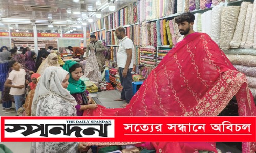 মারুফ কবীর : সকাল থেকে রাত পর্যন্ত ক্রেতাদের উপচেপড়া ভিড়ে মুখর হয়ে উঠেছে শহরের প্রধান বাজারগুলো। দোকান থেকে দোকানে ঘুরে ক্রেতারা পছন্দের পোশাক কিনছেন। আর ক্রেতা সমাগম দেখে সন্তুষ্ট বিক্রেতারাও। শুক্রবার ছুটির দিন হওয়ায় ঈদ বাজারে ভিড় ছিলো বেশি। পরিবার-পরিজন নিয়ে কেনাকাটায় ব্যস্ত ক্রেতারা। বিশেষ করে বিকেল ও ইফতারের পর থেকে গভীর রাত পর্যন্ত ভিড় ছিলো চোখে পড়ার মতো। বিক্রেতারা জানান, যশোর শহরের ছিট কাপড়ের দোকানে প্রাণচাঞ্চল্য দেখা যাচ্ছে। অনেকেই একসঙ্গে পরিবারের সবার জন্য ম্যাচিং কাপড় কিনছেন। এদিকে, ছিট কাপড়ের বিক্রি বাড়ার প্রভাব পড়েছে দর্জি দোকানগুলোতেও। এখন থেকেই অনেকেই কাপড় কিনে মাপ দিয়ে যাচ্ছেন টেইলার্সে। টেইলার্স মালিকরা জানান, রমজানের দ্বিতীয় সপ্তাহে অর্ডারের চাপ কয়েকগুণ বেড়ে যায়। তাই আগেভাগে অর্ডার নেওয়ার চেষ্টা চলছে। ব্যবসায়ীরা বলছেন, রমজানের ঈদে পাঞ্জাবি কিংবা মহিলাদের থ্রি পিসের ছিট কাপড়ের সাথে শার্ট ও প্যান্টের ছিট কাপড়ও বিক্রি হচ্ছে। এবছর শার্ট এবং প্যান্টে কাপড়ের মুল্য অনেক চড়া। যেখানে দেশি একটি শার্টের ছিট কাপড়ের মূল্য প্রতি পিস ৪শ’ টাকা থেকে সর্বোচ্চ ২৫শ’ টাকা। আবার ভারতীয় একটি শার্টের কাপড়ের পিসের মূল্য সর্বনিম্ন ৭শ’ টাকা থেকে শুরু করে সর্বোচ্চ ২ হাজার টাকা পর্যন্ত। প্যান্টের পিসের মূল্য সাড়ে ৫শ’ টাকা থেকে শুরু করে ২ হাজার টাকা পর্যন্ত। ঝিলিক দোকানের বিক্রেতা বাবু বলেন, ভারতীয় ডায়মন্ড, রেমন রে অ্যান্ড টেইলার্স ও এসআরএস ব্র্যান্ডের শার্ট-প্যান্ট বিক্রি হচ্ছে ভালো। পাশাপাশি ভারতীয় ও পাকিস্তানি কাপড়ের পাঞ্জাবির চাহিদাও রয়েছে। শহরের কাজীপাড়া এলাকার গৃহিণী শাহিদা রহমান বলেন, ভিড় এড়াতে রমজানের শুরুর দিকে বাজারে এসেছি। মেয়ের জন্য সিল্কের ওপর কাজ করা গজ কাপড় আর নিজের জন্য চায়না লিলেন কাপড় নিয়েছি। কলেজছাত্রী পুতুল বলেন, এবার ডিজিটাল প্রিন্টের কাপড় খুব সুন্দর এসেছে। রঙগুলোও উজ্জ্বল। আমরা বান্ধবীরা মিলে একসঙ্গে কাপড় কিনতে এসেছি। তবে গজ কাপড়ের দাম অনেক বেড়েছে। ক্রেতা বিক্রেতাদের সাথে কথা বলে জানা গেছে, ঈদ আনন্দ ভাগাভাগি করে নিতে কাপড়ের দাম তুলনামূলক বেশি হলেও কেনাকাটায় দাম কোনো বাধা হচ্ছে না। তবে অনেকে আবার বোনাস পাওয়ার পরে কেনাকাটা করেন। কয়েকদিন গেলেই মানুষের ভিড়ে মার্কেটগুলো আরও জমে উঠবে। চাকরিজীবীরা বোনাস পেলে বেচাকেনা আরো বাড়বে। এবছর প্রতিটি গজ কাপড়ের দাম বেড়েছে ৫০ থেকে ১শ’ টাকা। বিদেশি শার্ট-প্যান্টের পিসে গজ প্রতি ৫০ থেকে ১৫০ টাকা বেড়ছে। পায়জামা-পাঞ্জাবির কাপড়ের গজ প্রতি প্রকার ও মানভেদে বেড়েছে ৫০ থেকে ২শ’ টাকা। দেশি-বিদেশি সালোয়ার কাম