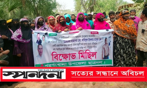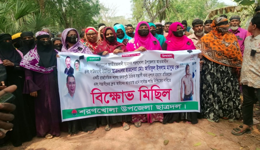 শরণখোলা (বাগেরহাট) প্রতিনিধি : বাগেরহাটের শরণখোলায় ত্রয়োদশ জাতীয় সংসদ নির্বাচন পরবর্তী সহিংসতার ঘটনার ভিডিও ধারণ করে সোশ্যাল মিডিয়ায় প্রকাশের জেরে ছাত্রদল নেতা আরিফুল ইসলাম মাসুমকে হত্যার প্রতিবাদে ও জড়িতদের ফাঁসির দাবিতে বিক্ষোভ মিছিল ও মানববন্ধন করেছে এলাকাবাসী।