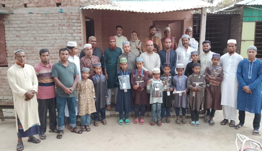 ইফতারের আগে এতিম, বয়স্কদের হাতে পাঞ্জাবী ও বৃদ্ধাদের মাঝে শাড়ি বিতরণ করা হয়।