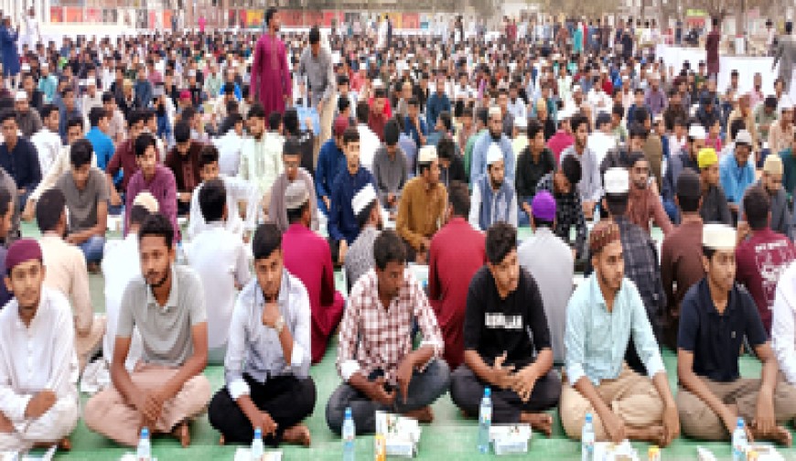 নিজস্ব প্রতিবেদক : পবিত্র মাহে রমজান উপলক্ষে যশোরের সরকারি মাইকেল মধুসূদন (এমএম) কলেজ-এ ইসলামী ছাত্রশিবিরের উদ্যোগে দোয়া ও ইফতার মাহফিল অনুষ্ঠিত হয়েছে। শনিবার কলেজের মধু মঞ্চের সামনে এ আয়োজন করা হয়। ইফতার মাহফিলে কলেজের মধু মঞ্চের সামনের মাঠ কানায় কানায় পূর্ণ হয়ে যায়। বিপুল সংখ্যক শিক্ষার্থী এতে অংশগ্রহণ করেন। আয়োজকদের পক্ষ থেকে জানানো হয়, এদিন প্রায় ১ হাজার ৪০০ শিক্ষার্থীকে ইফতার করানো হয়। এছাড়া নারী শিক্ষার্থীদের জন্য কলেজের হলগুলোতেও ইফতার পৌঁছে দেওয়া হয়। অনুষ্ঠানের শুরুতে কুরআন তেলাওয়াত করেন মহসিন আলী। পরে ইসলামী সংগীত পরিবেশন করেন জাহিদ হাসান। অনুষ্ঠানে উদ্বোধনী বক্তব্য দেন ইসলামী ছাত্রশিবির এমএম কলেজ শাখার সভাপতি রাকিবুল হাসান। স্বাগত বক্তব্য দেন সংগঠনের কলেজ শাখার সেক্রেটারি আনিসুর রহমান আলিফ। এমএম কলেজ ছাত্রদলের সাবেক? আহ্বায়ক শেখ হাসান ইমাম প্রমুখ এ সময় মাহে রমজানের গুরুত্ব ও তাৎপর্য নিয়ে আলোচনা করেন ইসলামী ছাত্রশিবিরের কেন্দ্রীয় কার্যকরী পরিষদের সদস্য ও যশোর শহর সভাপতি উবায়দুল্লাহ হুসাইন এবং সংগঠনের সাবেক কেন্দ্রীয় কার্যকরী পরিষদের সদস্য ও যশোর শহরের সাবেক সভাপতি কে. এম. আশরাফুল ইসলাম। অনুষ্ঠানের শেষে দোয়া ও মোনাজাত পরিচালনা করেন এমএম কলেজ কেন্দ্রীয় মসজিদের খতিব হাফেজ মাওলানা আমজাদ হুসাইন।
