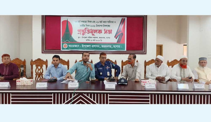 অভয়নগর (যশোর) প্রতিনিধি : যশোরের অভয়নগরে ২৫ মার্চ গণহত্যা দিবস এবং ২৬ মার্চ মহান স্বাধীনতা ও জাতীয় দিবস ২০২৬ উদযাপন উপলক্ষে প্রস্তুতিমূলক সভা অনুষ্ঠিত হয়েছে। উপজেলা প্রশাসনের আয়োজনে বুধবার (১১ মার্চ) সকাল ১১ টার দিকে পরিষদের সভাকক্ষে প্রস্তুতিমূলক সভা অনুষ্ঠিত হয়। নির্বাহী কর্মকর্তা শেখ সালাউদ্দীন দিপুর সভাপতিত্বে সভায় উপস্থিত ছিলেন, সহকারী কমিশনার (ভূমি) আশীষ কুমার বসু, উপজেলা স্বাস্থ্য ও পরিবার পরিকল্পনা কর্মকর্তা ডা. আলীমুর রাজীব, অভয়নগর থানার ওসি এস এম নুরুজ্জামান, থানা বিএনপির সভাপতি ফারাজী মতিয়ার রহমান, নওয়াপাড়া পৌর বিএনপির সভাপতি আবু নঈম মোড়ল, সাধারণ সম্পাদক রেজাউল করিম মোল্যা, উপজেলা জামায়াতে ইসলামীর আমির সরদার শরীফ হোসেন, সেক্রেটারি মহিউল ইসলাম, নওয়াপাড়া সার ব্যবসায়ী সমিতির সভাপতি আব্দুল গণি সরদার, সাধারণ সম্পাদক শাহ জালাল হোসেন, নওয়াপাড়া হাইওয়ে থানার ওসি ফজলুল করিম, মডেল কলেজের অধ্যক্ষ মহিদুল ইসলাম খান, নওয়াপাড়া প্রেসক্লাবের সাধারণ সম্পাদক (ভারপ্রাপ্ত) আশরাফ হোসেন প্রিন্স, কোষাধ্যক্ষ মল্লিক খলিলুর রহমান, ইউপি চেয়ারম্যান শেখ তৈয়েবুর রহমান সহ বীর মুক্তিযোদ্ধা, শিক্ষক, সূধীজন, বিভিন্ন সরকারি দপ্তরের কর্মকর্তা ও রাজনৈতিক নেতৃবৃন্দ।