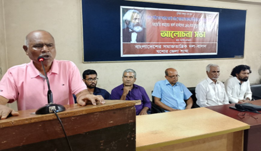 নিজস্ব প্রতিবেদক : শ্রমিক ঐক্যের আহ্বান, শোষণমুক্ত সমাজ গঠনের প্রত্যয় বিশ্বখ্যাত দার্শনিক ও সমাজতান্ত্রিক চিন্তাবিদ কার্ল মার্কস-এর ১৪৩তম মৃত্যুবার্ষিকী উপলক্ষে যশোরে আলোচনা সভা অনুষ্ঠিত হয়েছে। শনিবার যশোর প্রেসক্লাব মিলনায়তনে এ আলোচনা সভার আয়োজন করে বাংলাদেশের সমাজতান্ত্রিক দল (বাসদ) যশোর জেলা শাখা। সভায় বক্তারা বলেন- বিশ্বের ইতিহাস মূলত শ্রেণী সংগ্রামের ইতিহাস। শ্রমজীবী মানুষের অধিকার আদায় ও শোষণমুক্ত সমাজ প্রতিষ্ঠার জন্য শ্রমিক-কৃষকসহ সকল মেহনতি মানুষের ঐক্য গড়ে তোলার আহ্বান জানান তারা। বক্তারা মহান চিন্তাবিদ কার্ল মার্কসের দর্শন ও আদর্শ বর্তমান বিশ্বেও প্রাসঙ্গিক বলে উল্লেখ করেন। সভায় বক্তব্য রাখেন বাসদ জেলা কমিটির সদস্য উজ্জ্বল বিশ্বাস, বাংলাদেশ ছাত্র ইউনিয়নের সভাপতি রাশেদ খান, বাসদ সদস্য চন্ডীচরণ মজুমদার, বাসদ সদস্য সচিব হাচিনুর রহমান এবং বাসদের কেন্দ্রীয় সম্পাদকমণ্ডলীর সদস্য জনার্দন দত্ত নান্টু। এছাড়া উপস্থিত ছিলেন চারণের আহ্বায়ক জাহিদ আক্কাস ও সমাজতান্ত্রিক ছাত্র ফ্রন্টের সংগঠক অমিও রহমান। আলোচনা সভায় সভাপতিত্ব করেন বাসদ যশোর জেলা কমিটির আহ্বায়ক শাহাজান আলী।