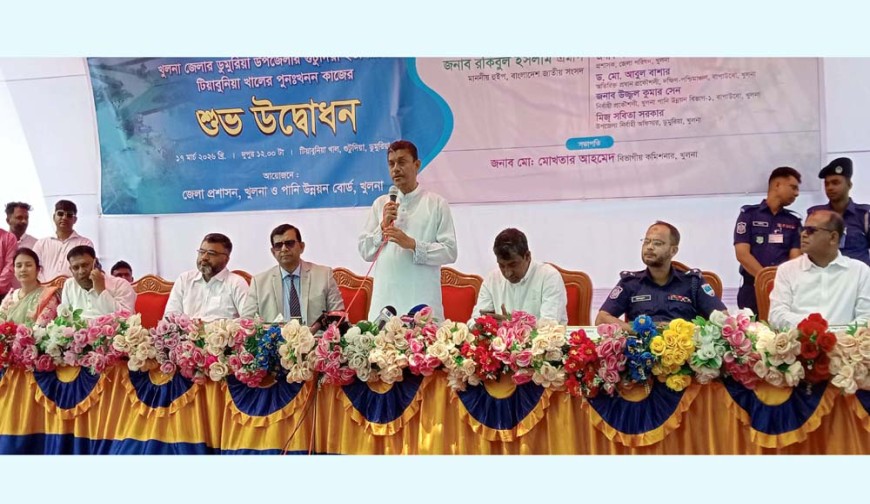 খুলনা বিভাগীয় কমিশনার মোঃ মোখতার আহমেদ’র সভাপতিত্বে “দেশব্যাপী নদী-নালা, জলাধার খনন ও পুনঃখনন” কর্মসূচির অংশ হিসেবে টিয়াবুনিয়া স্লইচ গেটের খাল পুনঃখনন উদ্বোধনী সভায় হুইপ রকিবুল ইসলাম বকুল এমপি বলেন, ‘পূর্বে দেখেছি গতানুগতিক খাল খনন হতে। যতবার খননে বরাদ্দ এসেছে সে টাকা খননের নামে পানিতে মিশে গেছে। এজন্য খাল খননের আগে কৃষকদের মতামত নেয়া হচ্ছে। আমরা স্থায়ী সমাধানের পথে যেতে চাই। অতীতে কি হয়েছে সেটা ভুলে যেতে হবে। দেশের উন্নয়নে পেছন ভূলে আমরা সামনের দিকে এগিয়ে যাবো।’ তিনি বলেন, ‘স্বচ্ছতার মধ্যদিয়ে খাল খনন হতে হবে। আগামীতে আমরা সরকারি একটি টাকাও অপচয় হতে দিব না। খাল খনন কাজে কোন ধরণের অসৎ উদ্দেশ্য নিয়ে কেউ বাধা দেয়ার চেষ্টা করলে সে যে দলেরই হোক তার বিরুদ্ধে কঠোর ব্যবস্থা নেয়া হবে।’ অনুষ্ঠানে বিশেষ অতিথির বক্তব্যদেন, খুলনা রেঞ্জ ডিআইজি মোঃ রেজাইক হক পিপিএম, জেলা প্রশাসক আ.স.ম. জামশেদ খোন্দকার, পুলিশ সুপার মোহাম্মদ মাহাবুবুর রহমান, জেলা পরিষদের নবাগত প্রশাসক এসএম মনিরুল হাসান বাপ্পী, বাপাউবো’র দক্ষিন-পশ্চিমাঞ্চলের প্রধান প্রকৌশলী ড. মোঃ আবুল বাশার, পাইবো’র নির্বাহী প্রকৌশলী উজ্জ্বল কুমার সেন ও উপজেলা নির্বাহী অফিসার সবিতা সরকার। সভা শেষে প্রধান অতিথি কোঁদাল দিয়ে খালের মাটি কেটে কাজের শুভ উদ্বোধন করেন।