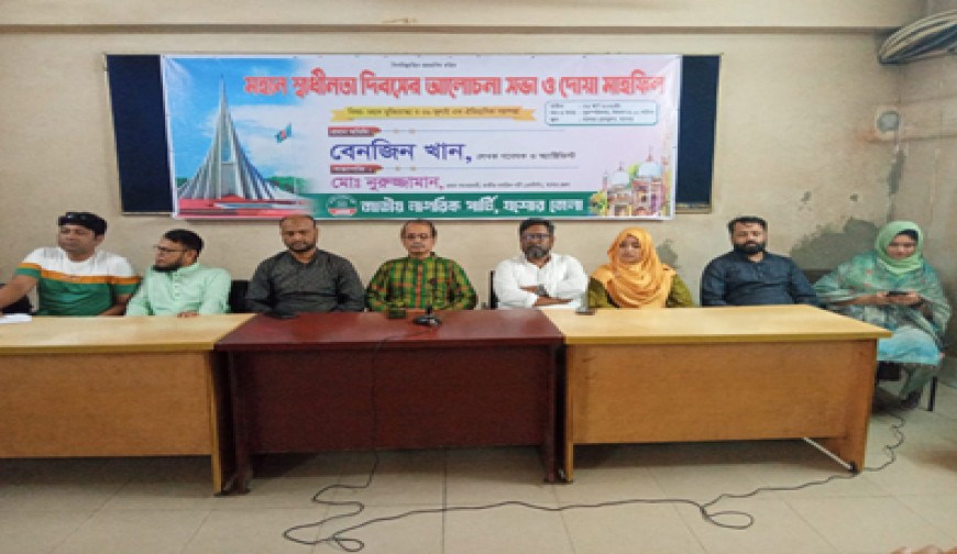 নিজস্ব প্রতিবেদক : মহান স্বাধীনতা দিবস উপলক্ষ্যে যশোরে জাতীয় নাগরিক পার্টি (এনসিপি) আয়োজিত এক আলোচনা সভায় লেখক-গবেষক ও অ্যাক্টিভিস্ট বেনজীন খান বলেছেন, জুলাই বিপ্লব কোনো বিচ্ছিন্ন ঘটনা নয়; এটি ইতিহাসের ধারাবাহিকতার অংশ এবং এখনো চলমান রয়েছে। বৃহস্পতিবার (২৬ মার্চ) প্রেসক্লাব যশোরে ‘মহান মুক্তিযুদ্ধ ও ৩৬ জুলাই: এক ঐতিহাসিক পরম্পরা’ শীর্ষক এই আলোচনা সভার আয়োজন করা হয়। এতে প্রধান অতিথির বক্তব্যে তিনি বলেন, জুলাই বিপ্লবের তরুণেরা নতুন সংবিধান ও ‘সেকেন্ড রিপাবলিক’-এর যে ধারণা দিয়েছিল, তা বাস্তবায়ন করা গেলে রাষ্ট্র ও রাজনীতিতে ইতিবাচক পরিবর্তন আনা সম্ভব হতো। এনসিপির জেলা সমন্বয় কমিটির প্রধান সমন্বয়কারী মো. নুরুজ্জামানের সভাপতিত্বে এবং সদস্য সালমান হাসান রাজিবের সঞ্চালনায় অনুষ্ঠিত সভায় আরও বক্তব্য দেন যুগ্ম সমন্বয়কারী মনিরুজ্জামান আজাদ, সালমা আক্তার আশা, জাতীয় যুবশক্তির জেলা আহ্বায়ক ইমদাদুল হক, সদস্য সচিব ফারিন আহমেদ, জাতীয় ছাত্রশক্তির জেলা আহ্বায়ক খান মিফতাহুল মোস্তাফিজ অমিত, সদস্য সচিব আল হাফিজ, জাতীয় শ্রমিক শক্তির জেলা আহ্বায়ক মো. আলাউদ্দিন এবং মণিরামপুর উপজেলা সংগঠক শহিদুল ইসলাম প্রমুখ।