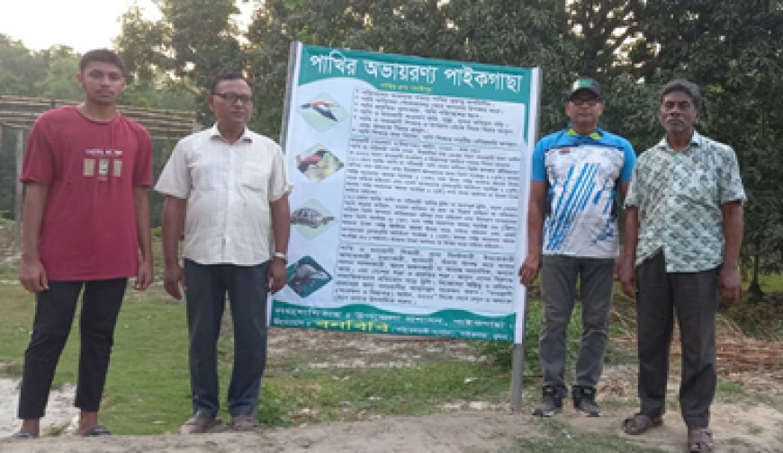 পাইকগাছা (খুলনা) প্রতিনিধি : খুলনার পাইকগাছায় পাখি শিকার রোধে পাখির অভয়ারণ্য পাইকগাছা গণসচেতনতামূলক বিলবোর্ড স্থাপন করা হয়েছে। স্থানীয় পরিবেশবাদী স্বেচ্ছাসেবী সংগঠন বনবিবি’র উদ্যেগে ও পাইকগাছা উপজেলা প্রশাসন এর সহযোগিতায় বাজার খোলায় শিকারী ও অসাধুদের সতর্ক করতে এই বিলবোর্ড স্থাপন করা হয়। ৪ মার্চ শনিবার বিকালে উপজেলার গদাইপুর খেলার মাঠ, স্কুল সংলগ্ন বাজার খোলায় মেইন রোডের পাশে বিলবোর্ড স্থাপন করা হয়। সাধারণ মানুষকে সচেতন করতে, পাখি সহ সকল বন্যপ্রাণী শিকার, হত্যা, লালন-পালন, ক্রয়-বিক্রয় বন্যপ্রাণী (সংরক্ষণ ও নিরাপত্তা) আইন-২০১২, অনুযায়ী দণ্ডনীয় অপরাধ সম্বলিত গণসচেতনতামূলক বিলবোর্ড স্থাপন করা হয়েছে। বিলবোর্ড স্থাপন করার সময় উপস্থিত ছিলেন পরিবেশবাদী স্বেচ্ছাসেবী সংগঠন বনবিবি’র সভাপতি সাংবাদিক ও কলামিস্ট প্রকাশ ঘোষ বিধিান, অ্যাড. শফিকুল ইসলাম কচি, নতুন বাজার ব্যবসায়ী সমবায় সমিতির সভাপতি অশোক কুমার ঘোষ, শেখ নাইমুর রহমান আপন, পরিবেশ কর্মি কার্তিক বাছাড়, গনেশ দাস প্রমুখ।