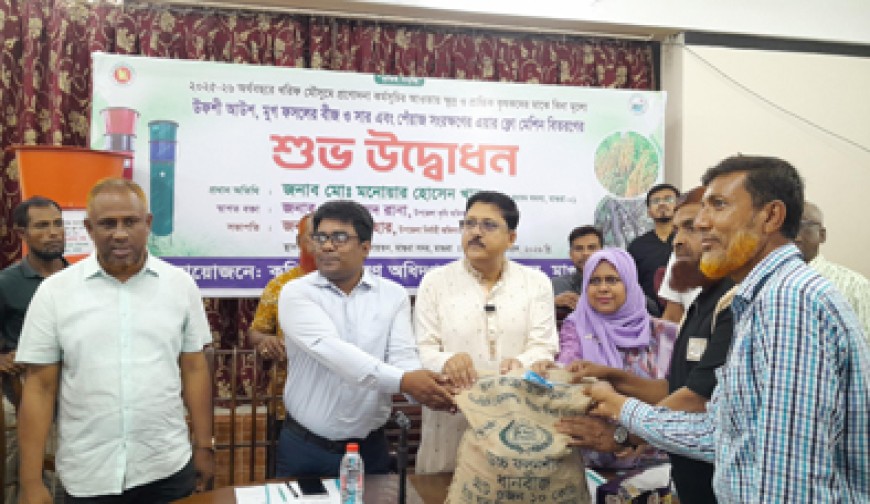 মাগুরা প্রতিনিধি : মাগুরায় ২০২৫-২৬ অর্থ বছরে খরিফ মৌসুমী প্রণোদনা কর্মসূচির আওতায় ক্ষুদ্র ও প্রান্তিক কৃষকদের মাঝে উফশী আউশ,মুগ ফসলের বীজ ও সার এবং পেঁয়াজ সংরক্ষণের এয়ার ফ্লো মেশিন বিতরণের শুভ উদ্বোধন হয়েছে। শনিবার সকাল ১১ টায় মাগুরা সদর উপজেলা পরিষদ মিলনায়তনে এ কর্মসূচির উদ্বোধন করেন মাগুরা-১ আসনের সংসদ সদস্য মনোয়ার হোসেন খান। উপস্থিত ছিলেন মাগুরা সদর উপজেলা পরিষদের নির্বাহী কর্মকর্তা মেহেরুন্নাহার ও সদর উপজেলা কৃষি কর্মকর্তা মাসুদ রানা। আয়োজকরা জানান চলতি বছর খরিফ মৌসুমী প্রণোদনা কর্মসূচির আওতায় সদর উপজেলার ২ হাজার কৃষকের মাঝে উফশি আউশের বীজ ও সার ,১৬০ জন কৃষকের মাঝে মুগ ডালের বীজ ও সার এবং ৪০ জন কৃষকের মাঝে এয়ার ফ্লো মেশিন বিতরণ করা হয়েছে।