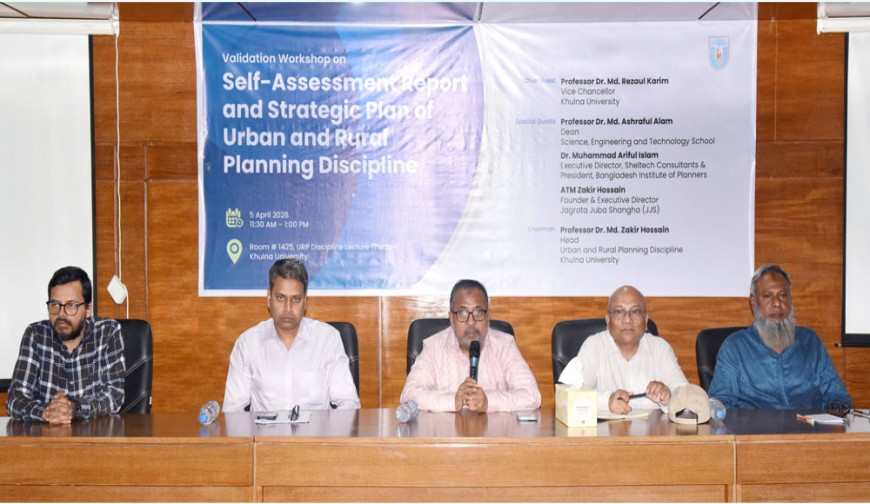 খুলনা প্রতিনিধি : খুলনা বিশ্ববিদ্যালয়ের নগর ও গ্রামীণ পরিকল্পনা (ইউআরপি) ডিসিপ্লিনের উদ্যোগে ‘সেলফ-অ্যাসেসমেন্ট রিপোর্ট অ্যান্ড স্ট্র্যাটেজিক প্ল্যান’ শীর্ষক ভ্যালিডেশন কর্মশালা অনুষ্ঠিত হয়েছে। ৫ এপ্রিল (রোববার) দুপুর ১২টায় বিশ্ববিদ্যালয়ের ইউআরপি ডিসিপ্লিন লেকচার থিয়েটারে এ কর্মশালা অনুষ্ঠিত হয়।