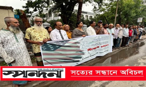 নিজস্ব প্রতিবেদক : মার্কিন সাম্রাজ্যবাদ ও জায়ানবাদী ইসরাইলের ইরানে হামলার প্রতিবাদে যশোরে মানববন্ধন অনুষ্ঠিত হয়েছে। বৃহস্পতিবার (৯ এপ্রিল) দুপুর ১২টায় প্রেসক্লাব যশোরের সামনে মাওলানা ভাসানী পরিষদের উদ্যোগে এ কর্মসূচি পালন করা হয়। সংগঠনের জেলা সভাপতি হারুন অর রশীদের সভাপতিত্বে এবং সাধারণ সম্পাদক মুস্তাফিজুর রহমান কবিরের সঞ্চালনায় মানববন্ধনে বক্তব্য রাখেন বিশিষ্ট লেখক, গবেষক ও চিত্রশিল্পী মফিজুর রহমান রুন্নু, শিল্পকলা একাডেমির সাবেক সাধারণ সম্পাদক অ্যাডভোকেট মাহমুদ হাসান বুলু, বিপ্লবী কমিউনিস্ট লীগের কেন্দ্রীয় নেতা জিল্লুর রহমান ভিটু, জেলা সম্পাদক তসলিমুর রহমান, জেলা পূজা উদযাপন পরিষদের সাবেক সহ-সাধারণ সম্পাদক যোগেষ চন্দ্র দত্ত, নারী সংগঠক বর্ণালী সরকার, সাংস্কৃতিক নেতা আনোয়ারুল করিম সোহেল, আইডিইবির জেলা সাধারণ সম্পাদক প্রকৌশলী রুহুল আমিনসহ আরও অনেকে। বক্তারা বলেন, মার্কিন সাম্রাজ্যবাদ ইরানের তেল সম্পদের ওপর আধিপত্য বিস্তারের লক্ষ্যে অন্যায়ভাবে ইসরাইলকে সঙ্গে নিয়ে ইরানে হামলা চালাচ্ছে। এতে ইরানের রাজনৈতিক নেতা, নারী ও শিশুসহ অসংখ্য মানুষ নিহত হচ্ছে এবং নগর জনপদ, যোগাযোগ ব্যবস্থা ও তেলক্ষেত্রে একের পর এক হামলা করা হচ্ছে। তারা আরও বলেন, ইরান প্রতিরোধ গড়ে তুললেও পরাশক্তির বিরুদ্ধে টিকে থাকা কঠিন হয়ে পড়ছে। সম্প্রতি যুদ্ধবিরতির পরও পুনরায় ইসরাইলের হামলা চালানোকে ‘প্রতারণা’ হিসেবে উল্লেখ করেন বক্তারা। মানববন্ধন থেকে অন্যায় এ হামলা বন্ধে আন্তর্জাতিক সম্প্রদায়ের হস্তক্ষেপ কামনা করা হয়। পাশাপাশি, ইউনুস সরকারের সঙ্গে যুক্তরাষ্ট্রের অসম চুক্তি বাতিলেরও আহ্বান জানান বক্তারা।