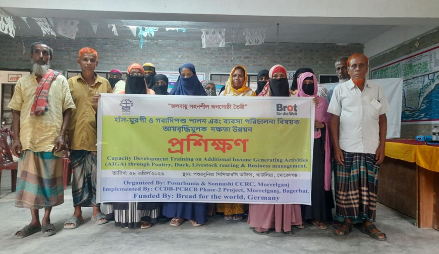 মোরেলগঞ্জ (বাগেরহাট) প্রতিনিধি : বাগেরহাটের মোরেলগঞ্জে উপজেলায় বেসরকারি উন্নয়ন সংস্থা সিসিডিবি’র উদ্যোগে হাঁস-মুরগি ও গবাদিপশু পালন এবং ব্যবসা পরিচালনা বিষয়ক আয়বৃদ্ধিমূলক দক্ষতা উন্নয়ন এক প্রশিক্ষণ প্রদান করা হয়েছে।