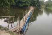 কলারোয়ায় বাঁশের ভাসমান সাঁকোয় নদী পারাপার