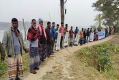 টেকসই বেড়িবাঁধের দাবিতে শরণখোলায় মানববন্ধন