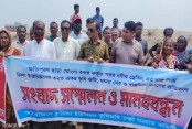 রবি ডাকুয়া, মোংলা : বাগেরহাটের মোংলায় হুকুমদখল করা কৃষি জমিতে বালু ভরাটের প্রতিবাদে ও বকেয়া ক্ষতিপূরণের দাবিতে স্থানীয় কৃষকরা মানববন্ধন ও বিক্ষোভ করেছেন। শনিবার চিলা ইউনিয়নের কলাতলা এলাকায় ‘চিলা ইউনিয়ন কৃষি জমি রক্ষা সংগ্রাম কমিটি’ আয়ো...