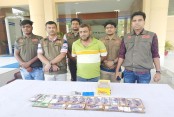 নিজস্ব প্রতিবেদক : যশোরের ঝিকরগাছা উপজেলার কুন্দিপুর গ্রামে অভিযান চালিয়ে ৩০০ পিস ইয়াবা ও মাদক বিক্রির প্রায় সাড়ে ১৯ লাখ টাকা জুতার বাক্স থেকে উদ্ধার করেছে ডিবি পুলিশ। এ ঘটনায় জিয়াউর রহমান (৪০) নামে এক মাদক ব্যবসায়ীকে আটক করা হয়েছে। শুক্রবার (১০ ...